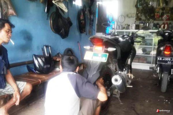 Tampak sepeda motor dinas milik Pelda Ibrahim, Babinsa Koramil 09 Tonjong, yang ditugaskan sebagai anggota tim jurnalistik TMMD Reguler 109 Brebes sejak Pra TMMD 15 Agustus 2020 lalu, juga masuk bengkel untuk perawatan dan servis. Sabtu (24/10/2020).