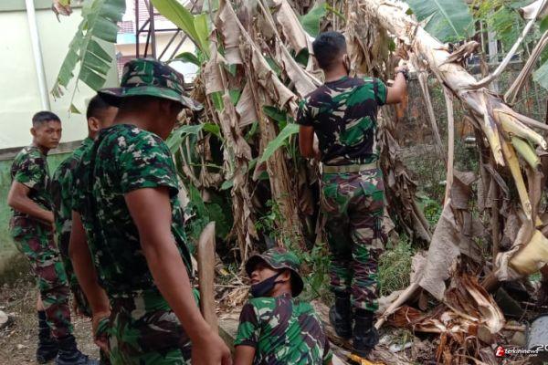 Untuk itu warga dibantu anggota satgas TMMD 109 / Sintang melakukan pembersihan di lingkungan desa Tirta Karya, Kecamatan Ketungau, Kabupaten Sintang, Kalimantan Barat, Jumat (23/10/2020).