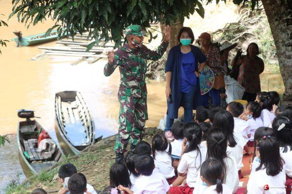 “Salah satu bakti TNI adalah mengajar dan memotivasi generasi muda untuk menjadi lebih baik. Kebetulan, saya pernah menjadi Pembina pramuka. Nah, ilmu yang saya dapat sebelumnya saya gunakan untuk mengajari mereka lagu, tadi saya nyanyikan Lagu Lima Jari, mereka senang dan langsung mencobanya,” tuturnya.