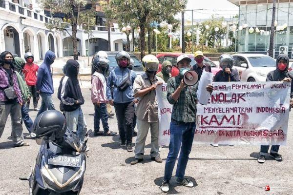 MAKASSAR, -- Puluhan aktivis melakukan aksi unjuk rasa di depan sekretariat Koalisi Aksi menyelamatkan Indonesia (KAMI) yang mengatasnamakan Aliansi mahasiswa penyelamat Undang-Undang