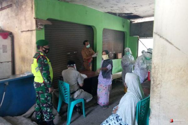 TEGAL - Satgas tugas Covid-19 Kecamatan Dukuhturi mendampingi tim kesehatan dari Puskesmas Kupu melaksanakan Swab terhadap pedagang, Selasa (27/10).
