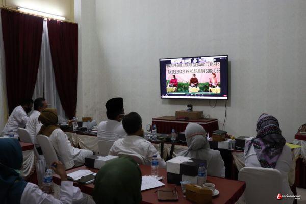 BREBES - Wakil Bupati Brebes Narjo SH MH didampingi beberapa Kepala OPD terkait menyaksikan Deklarasi Program Desa Ramah Perempuan dan Peduli Anak sebagai Strategi Akselerasi Pencapaian Sustainable Development Goals (SDGs) Desa. Acara tersebut diikuti secara virtual dari pendopo Bupati Brebes, Rabu (11/11).