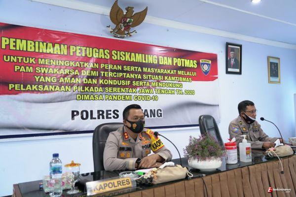 Untuk meningkatkan peran serta masyarakat melalui pengamanan swakarsa demi terciptanya situasi kamtibmas yang aman dan kondusif serta mendukung pelaksanaan pilkada serentak Jawa Tengah Th 2020 dimasa Pandemi Covid 19, Polda Jawa Tengah melakukan pembinaan pada petugas siskamling dan Potmas di Rupatama Polres Batang, Selasa (17/11/2020).