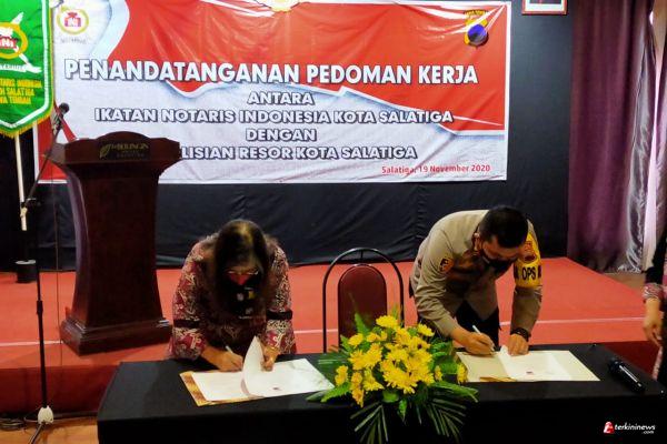 Dalam rangka menjalin sinergitas kemitraan guna mewujudkan kerjasama timbal balik yang semakin baik antara Ikatan Notaris Indonesia (INI) Kota Salatiga dengan Kepolisian Resor Salatiga menggelar penendatangan "Pedoman Kerja" yang dilaksanakan di Hotel Beringin Jalan Jendral Sudirman Salatiga, pada hari Kamis tanggal 19/11/2020.