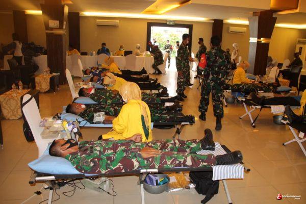Cilacap - Wujud kepedulian sosial kepada masyarakat yang membutuhkan, anggota Kodim 0703/Cilacap ikut berpartisipasi dalam kegiatan donor darah yang di selenggarakan Lanal Cilacap di Tulip Meeting Room Hotel Dafam, Jl. Dr. Wahidin No. 5, Sidakaya, Kecamatan Cilacap Selatan, Senin (23/11/2020).