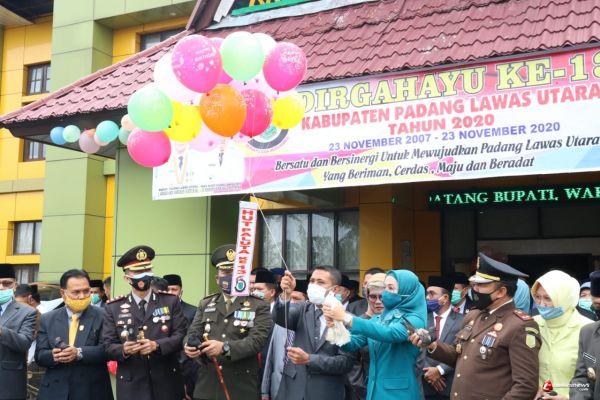 "Saya mengajak kita semua untuk meningkatkan kepedulian sosial, jaga kebersamaan dan satukan tekad bahu membahu. Jadikan momentum peringatan hari jadi yang sederhana ini sebagai media introspeksi dan lebih mendekatkan diri kepada Allag SWT serta berdoa semoga wabah COVID-19 segera berakhir dan kita semua bisa beraktifitas sebagaimana biasa. Tingkatkan terus rasa persatuan dan kesatuan di Bumi Balakka yang kita cintai ini" ujar Bupati Padang Lawas Utara.