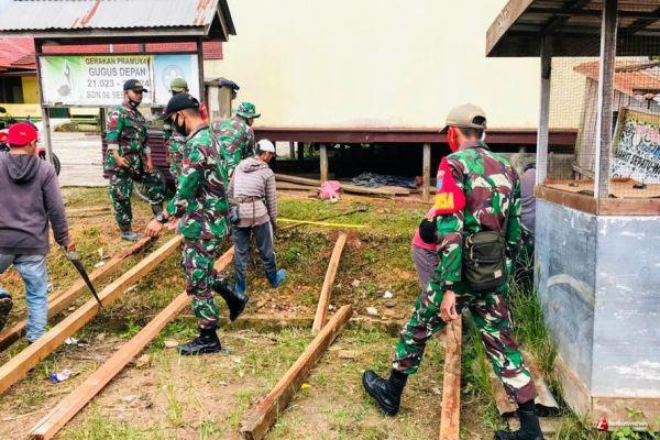 Satgas Yonif 407/PK Karya Bhakti Bantu Warga Membangun Lapak