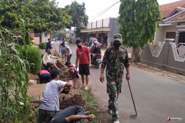 Cegah Banjir Babinsa Bersama Warga Kerja Bakti Bersihkan Saluran Air