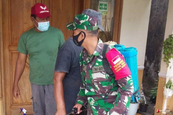 Cegah Covid, Babinsa dan Warga Maos Kidul Lakukan Penyemprotan Disinfektan