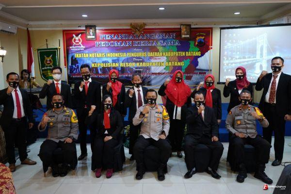 Pengurus Daerah (Pengda) Ikatan Notaris Indonesia (INI) Batang melakukan penandatanganan kerja sama dengan Kepolisian Resor Batang (Polres) Batang.