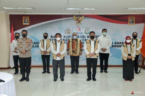 Mabes Pori bersama Bawaslu dan Gakkumdu melakukan rapat kerja nasional di kantor Bawaslu dalam rangka persiapan akhir pemilihan kepala daerah (Pilkada) Serentak 2020, Kamis (4/12/2020).