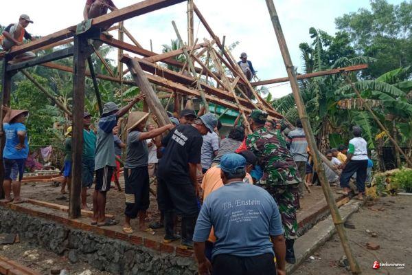 TNI Bersama Warga Gotong Royong Rehab Rumah Tidak Layak Huni Warga Desa Banjareja