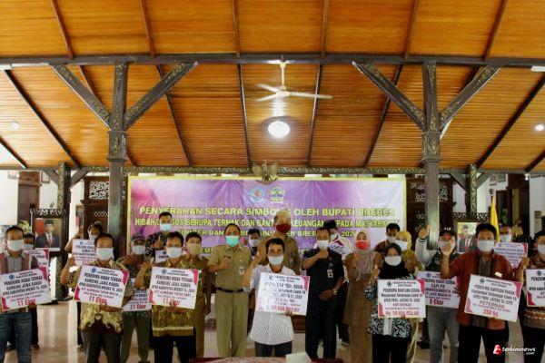 Juga bantuan dari APBD Provinsi Jawa Tengah berupa program fasilitasi pemulihan ekonomi desa bagi masyarakat terdampat covid-19 pada 4 Kelompok Tani Ternak Unggas. Bantuan diserahkan Wakil Bupati Brebes Narjo SH MH dan Kepala Dinas Peternakan dan Kesehatan Hewan Provinsi Jawa Tengah, Ir Lalu Muhamad Syafriadi MM, di Pendopo Brebes, Senin (21/12).