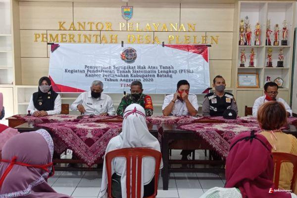 Danramil 03/Gringsing Kapten Inf. Gunawan mendampingi Penyerahan Sertifikat Tanah Pada Program Pendaftaran Tanah Sistimatis Lengkap (PTSL ) di Desa Plalen, Kecamatan Gringsing kabupaten Batang. Rabu (23/12/20).