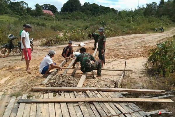 Dalam rangka menyambut Natal dan tahun baru 2021, Pos Nanga Bayan Satgas Pamtas RI-MLY Yonif 407/PK bersama warga melaksanakan karya bhakti perbaikan jalan serta parit depan Gereja Nasrani (GPSK) jemaat PNIEL Desa Nanga Bayan Kecamatan Ketungau Hulu Kabupaten Sintang, Kalbar.