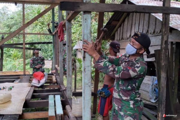 Wujudkan Rumah Layak Huni, Satgas Pamtas Yonif 407/PK Bantu Warga Perbatasan Bangun Rumah