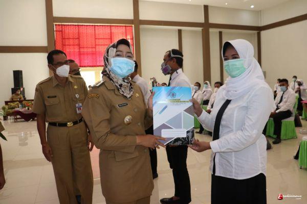 Idza menyerahkan secara simbolis kepada 96 orang CPNS hasil seleksi formasi 2019 yang terdiri dari 42 orang golongan II dan 54 orang golongan III.