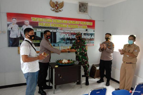 Cilacap - Inilah wujud sinergitas dan soliditas yang ditunjukan oleh Aparat TNI-Polri di wilayah Kecamatan Kesugihan, Cilacap. Mengetahui salah satu anggota Polsek naik pangkat, Danramil 06/Kesugihan Kapten Inf Sueb beserta anggota menghadiri acara tasyakuran kenaikan pangkat periode 1 Januari 2021 anggota Polsek Kesugihan yang dilaksanakan di Mapolsek setempat, Senin (4/1/2021).
