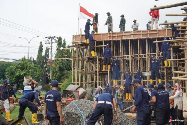 Dalam rangka percepatan pembangunan rehab Aula Kodim 0736/Batang Nawakara PLTU Batang membantu tenaga bersama Para Prajurit bergotong royong dalam proses pengecoran teras depan Aula Makodim, Kamis (07/01/21) pagi.