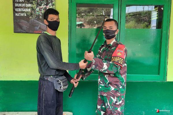 "Dengan adanya pembinaan teritorial yang baik dengan berinteraksi sosial dengan masyarakat, sehingga Sdr AG sadar tentang bahaya penggunaan senjata rakitan dan menyerahkan satu pucuk senjata laras panjang jenis Lantak tersebut kepada Pos Kantuk Asam atas dasar kemauan sendiri dan tanpa paksaan," tambahnya.