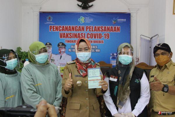Kepala Dinas Kesehatan Kabupaten Brebes dr. Sartono menjelaskan, dalam rangka pencanangan dihadirkan 11 orang prjabat publik dan perwakilan masyarakat untuk vaksinasi. Namun yang berhasil divaksin hanya empat orang. Yakni Bupati Brebes Hj Idza Priyanti SE MH, Wakil Bupati Brebes Narjo, Wakil Ketua DPRD Brebes Moh Rizky Ubaidillah, dan perwakilan PCNU Brebes H Ahmad Sururi.