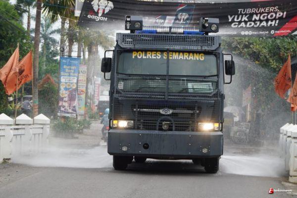 "Dalam pelaksanaan penyemprotan disinfectant ini kami turunkan sekitar 80 Personil gabungan dari Kodim 0714 Salatiga, Polres Semarang, Satpol PP, Pemadam Kebakaran dan BPBD Kabupaten Semarang dengan peralatan Mobil Water Canon, Mobil Damkar dan Penyemprot Secara Manual atau spraying" Ujar Kapolres Semarang