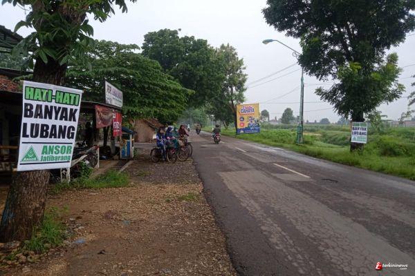 "Kami merasa prihatin dengan kondisi jalan yang rusak dan berlubang. Karena mengancam keselamatan pengendara, terutama pengguna sepeda motor, maka kami beriikhtiar memasang baner himbauan," ungkap Ketua PAC Ansor Jatibarang Moh Ircham Arifudin