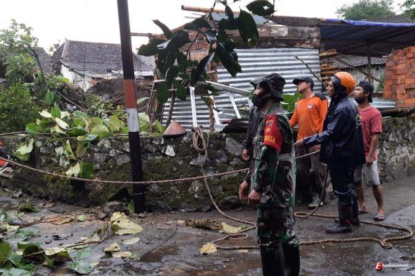 Di Dusun Klidon kejadian tersebut mengakibatkan pohon jati diameter 90 cm tumbang menimpa rumah warga serta menimpa kabel listrik dan kawat telpon hingga putus.