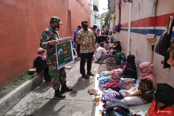 Babinsa Bersama Lurah dan Linmas Gajahan Laksanakan Pengecekan Dan Himbauan Protokol Kesehatan Di Pasar Rombeng