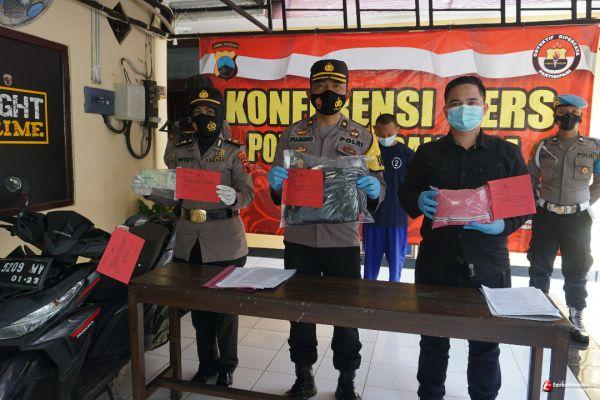 Barang bukti yang berhasil diamankan yaitu satu unit sepeda motor jenis Honda Vario warna hitam bernomor polisi R-5209-WV, satu jaket warna pink, satu jas hujan warna hitam dan STNK sepeda motor tersebut.