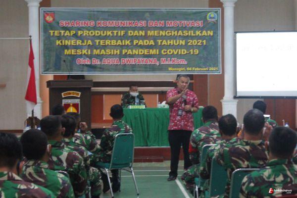 WONOGIRI- Pakar komunikasi dan motivasi nasional Dr. Drs. Aqua Dwipayana, M.I.Kom diagendakan mengunjungi Markas Kodim 0728/Wonogiri guna memberikan sharing komunikasi dan motivasi kepada para prajurit, PNS maupun anggota Persit di Satuan tersebut.