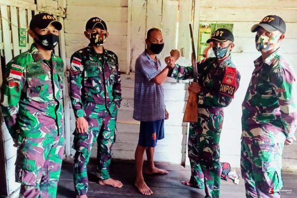 "Penyerahan senjata api milik Bapak Niko bermula dari kegiatan karya bhakti yang dilakukan oleh personel Pos Sei Kelik yang dipimpin Danpos Sei Kelik Serka Agus Triyanto bersama empat anggotanya saat membantu memperbaiki rumahnya yang sudah rusak," Ungkap Dansatgas.