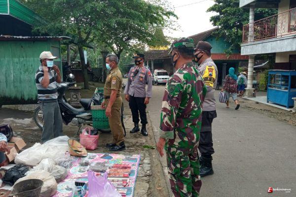 SRAGEN- Anggota Koramil 10/Tangen Sertu Giyatno bersama Petugas dari Polsek dan Puskesmas Kec. Tangen melaksanakan PSBB kegiatan Operasi Masker di Pasar Towo Ds Denanyar Kec. Tangen.