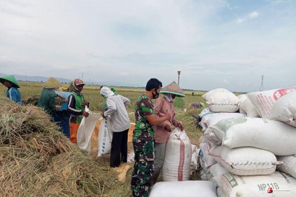 Cilacap - Musim panen padi telah tiba, para petani di Desa Maos, Kecamatan Maos mulai sibuk memanen padi milik mereka di sawah. Guna meningkatkan sinergitas dan kemitraan diantara Babinsa selaku aparat kewilayahan dengan seluruh warga masyarakat khususnya para petani, Babinsa Koramil 07 Maos Sertu Tofik mendampingi warga setempat yang sedang memanen padi di areal sawah desa setempat, Sabtu (06/02/21).