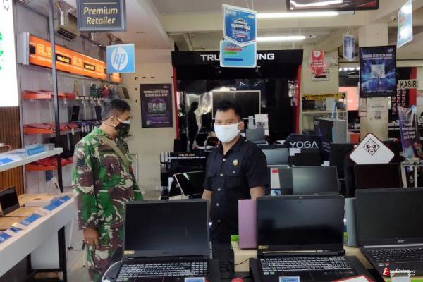 Babinsa Kelurahan Kratonan Koramil 03 Serengan Kodim 0735 Surakarta Sersan Mayor Yudhi Widianto melaksanakan pengecekan Penerapan Edukasi Pembatasan Pemberlakuan Kegiatan Masyarakat (PPKM) di Bank Shinhan dan Els Komputer.