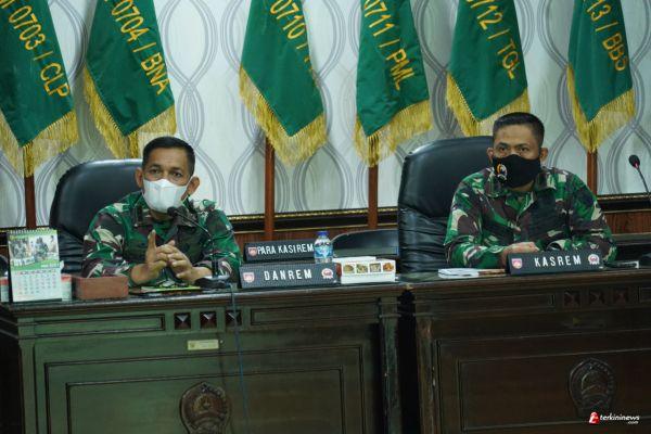BANYUMAS- Komandan Korem 071/Wijayakusuma Kolonel Inf Dwi Lagan Safrudin, S.I.P., memimpin Sidang Pankar Jabatan Perwira, Selasa (9/2/2021) di Aula Jenderal Soedirman Makorem 071/Wijayakusuma, Sokaraja, Banyumas.