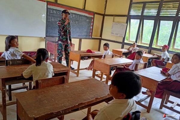 Kekurangan Guru Diperbatasan, Satgas Pamtas Yonif 407/PK Bantu Mengajar