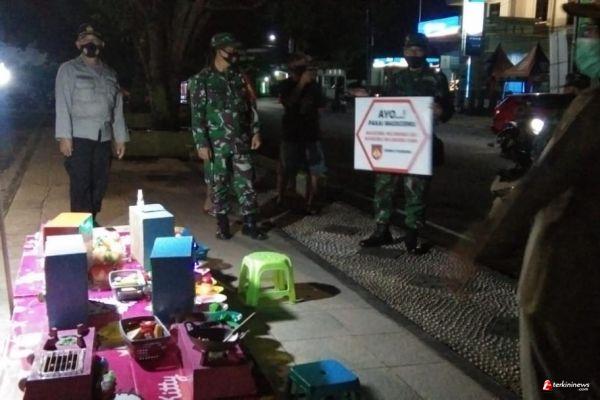 BATANG- Petugas Gabungan Satgas Covid- 19 dari TNI - Polri dan Satpol - PP terus melakukan operasi yustisi pada malam hari secara berpindah - pindah, kali ini menggelar operasi di Jalan Ahmad Yani, Kelurahan Proyonanggan Tengah, Kecamatan Batang, Kabupaten Batang, Senin (8/2/21) Malam.