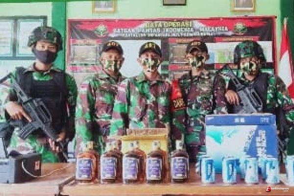 Patroli Diperbatasan, Satgas Pamtas Yonif 407/PK Amankan Miras