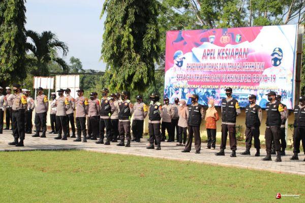 ​​​​​​​PEKALONGAN- Polres Pekalongan tadi menggelar Apel kesiapan Bhabinkamtibmas dan Tenaga Kesehatan (Nakes) sebagai Tracer dan Vaksinator Covid-19 di halaman Mapolres Pekalongan, Kamis (11/2/2021).