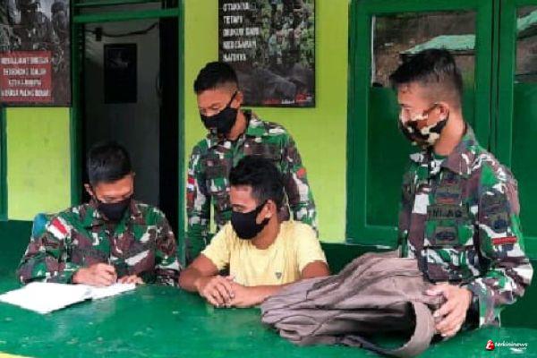 "Anggota Pos Kantuk Asam yang sedang melaksanakan jaga pos dalduk melihat 1 orang yang akan melintas di depan Pos kemudian memberhentikan dan menanyakan masyarakat tersebut," ungkap Dansatgas.