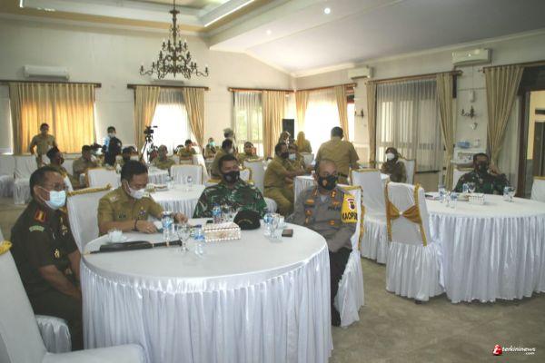 Cilacap - Kepala Staf Kodim (Kasdim) 0703 Cilacap Mayor Inf Drs. Abdul Asis Lallo bersama Forkopimda Kabupaten Cilacap mengikuti Video Conference (Vicon) Laporan Sekda Provinsi Jateng terkait capaian tindak lanjut arahan Gubernur Jawa Tengah pada minggu ke-6 Tahun 2021, bertempat di Ruang Gadri Rumah Dinas Bupati Cilacap, Jln. Jenderal Sudirman No. 32 Cilacap, Jawa Tengah, Senin (15/2/2021).