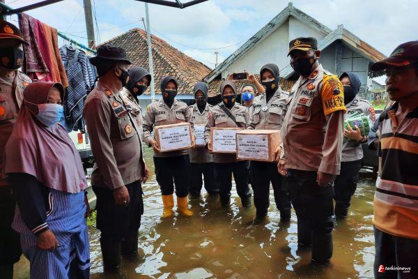 Polwan dan Bhabinkamtibmas Berikan Bantuan Kemanusiaan Dari Kapolda Jateng Untuk Korban Bencana Banjir