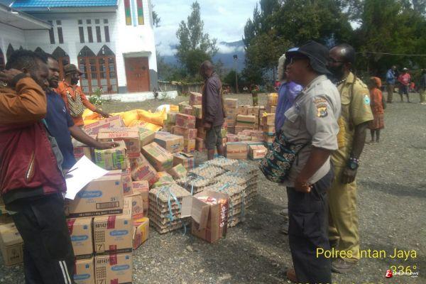 Bantuan yang diberikan berupa mie, susu, sarden, gula, kopi. Secara simbolis bantuan dari bupati, kapolres dan ketua DPRD Intan Jaya, Panius Wonda diterima oleh Pastor Yustinus Rahangiar. Selain memberikan bantuan logistik, rapat lanjitan juga dilaksanakan,untuk mencari solusi meningkatkan keamanan di Intan Jaya.