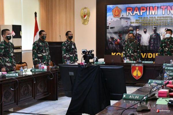 Kegiatan virtual meeting dengan sentral di GOR Ahmad Yani Mabes TNI Cilangkap ini dipimpin oleh Panglima TNI Marsekal TNI Dr. Hadi Tjahjanto, S.I.P. dengan mengusung tema, “TNI kuat, solid, profesional, dicintai rakyat siap mendukung percepatan penanganan Covid-19 dan pemulihan ekonomi serta menjaga persatuan kesatuan bangsa demi keutuhan NKRI”.