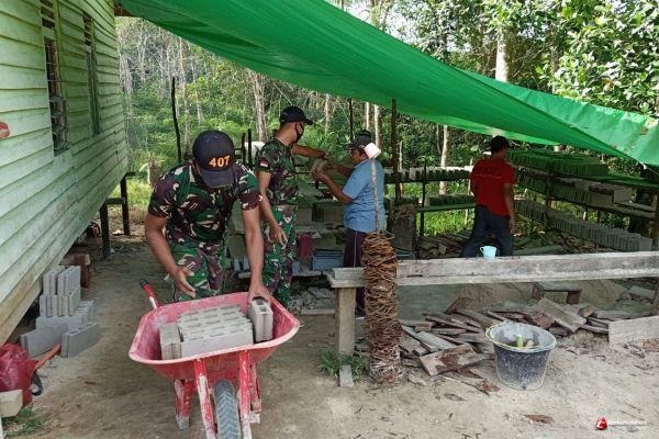 KALIMANTAN- Satuan tugas (Satgas) pengamanan perbatasan (Pamtas) RI-Malaysia (MLY) Yonif 407/Padmakusuma bersama warga merenovasi Gereja Riam sejawak, di Desa Riam Sejawak, Kecamatan Ketungau Hulu, Kabupaten Sintang, Kalbar.