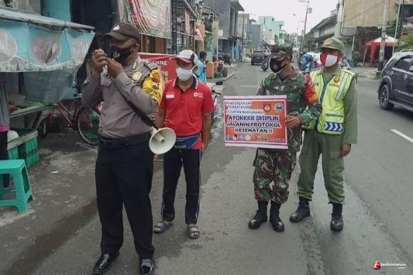 SURAKARTA- Babinsa Kelurahan Sudiroprajan Koramil 04/Jebres Kodim 0735/Surakarta Serda Hidayat Kurniawan didampingi Bhabinkamtibmas, Linmas dan Sibat yang tergabung dalam Satgas Covid - 19 berbasis Mikro melaksanakan himbauan protokol kesehatan dimasa Pemberlakuan Pembatasan Kegiatan Masyarakat (PPKM) diwilayah Sudiroprajan Jl.Sumase Rw 3 sampai dengan Rw 8 Kelurahan Sudiroprajan Kecamatan Jebres Kota Surakarta, Selasa 16/02/2021.
