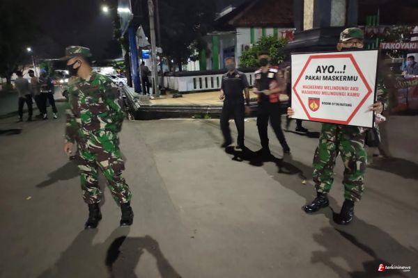 BATANG- Petugas gabungan dari Koramil 10/Batang Kota, Polsek Batang serta Satpol - PP melakukan patroli secara rutin dalam rangka Pemberlakuan Pembatasan Kegiatan Masyarakat (PPKM) Skala Mikro diwilayah Kec. Batang, Rabu (18/2/21) malam.