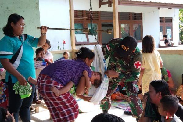 Peduli Kesehatan Ibu dan Anak, Satgas Yonif 407/PK Bantu Bersama Puskesmas Gelar Posyandu