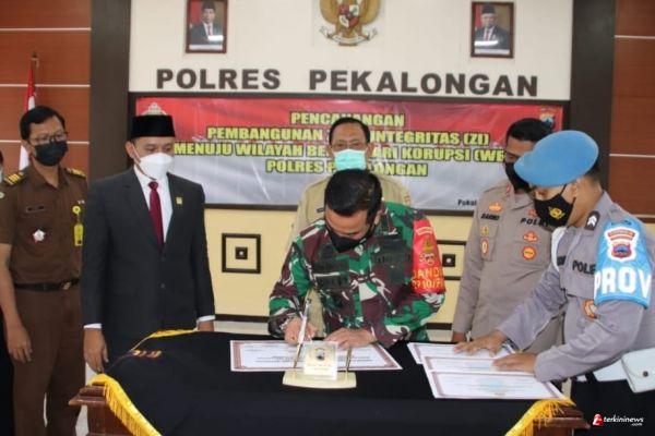 Komitmen pencanangan pembangunan zona integritas ditandatangani Kapolres Pekalongan AKBP Darno, S.H., S.I.K. bersama Forum Komunikasi Pimpinan Daerah (Forkompimda).